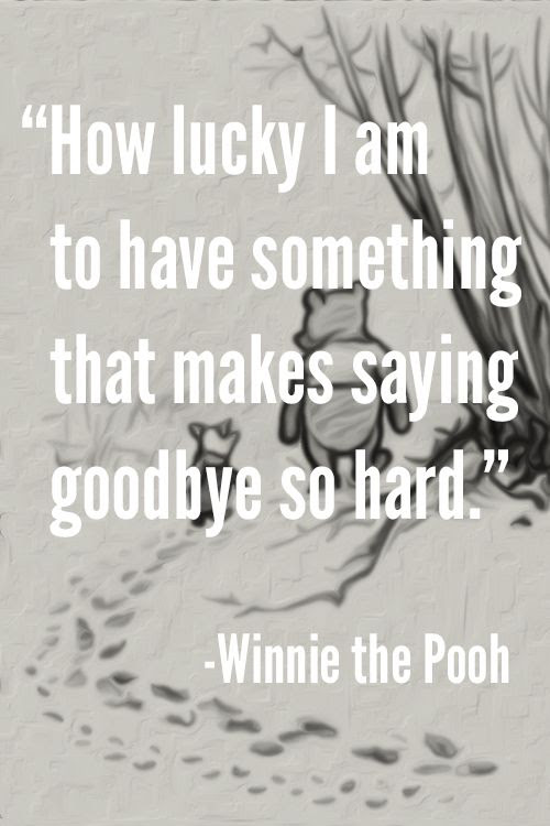 Like winnie the pooh i am lucky because i have many relationships that will make saying goodbye so very hard.